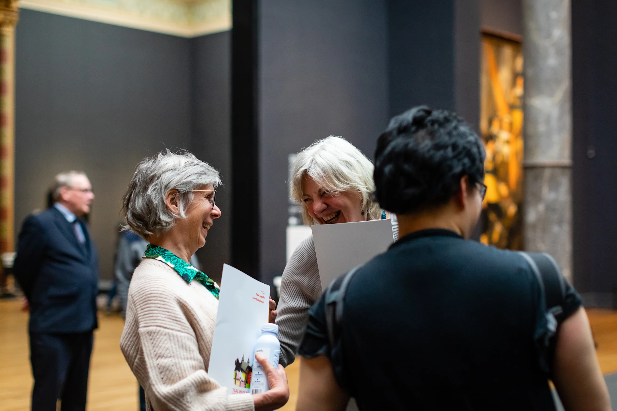 “Het was echt fantastisch!”, zegt freelance NT2-docente Lishe Los terwijl ze met een glimlach de Eregalerij uitloopt. Ze is één van de eersten die zich hier na de lezingen naartoe haastte. De torenhoge zalen, met helemaal achterin De Nachtwacht, zijn deze avond speciaal gereserveerd voor de driehonderd ‘Taal in de praktijk’-deelnemers. “Maar toen ik hier binnenkwam, waren de meesten nog aan het borrelen”, zegt Lishe. “Hoe vaak maak je nou mee dat je bijna zonder mensen om je heen van deze schilderijen kunt genieten?”